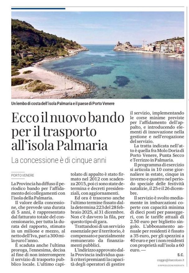 IL SECOLO XIX 04 Gennaio 2026 Ecco il nuovo bando per il trasporto all'isola Palmaria